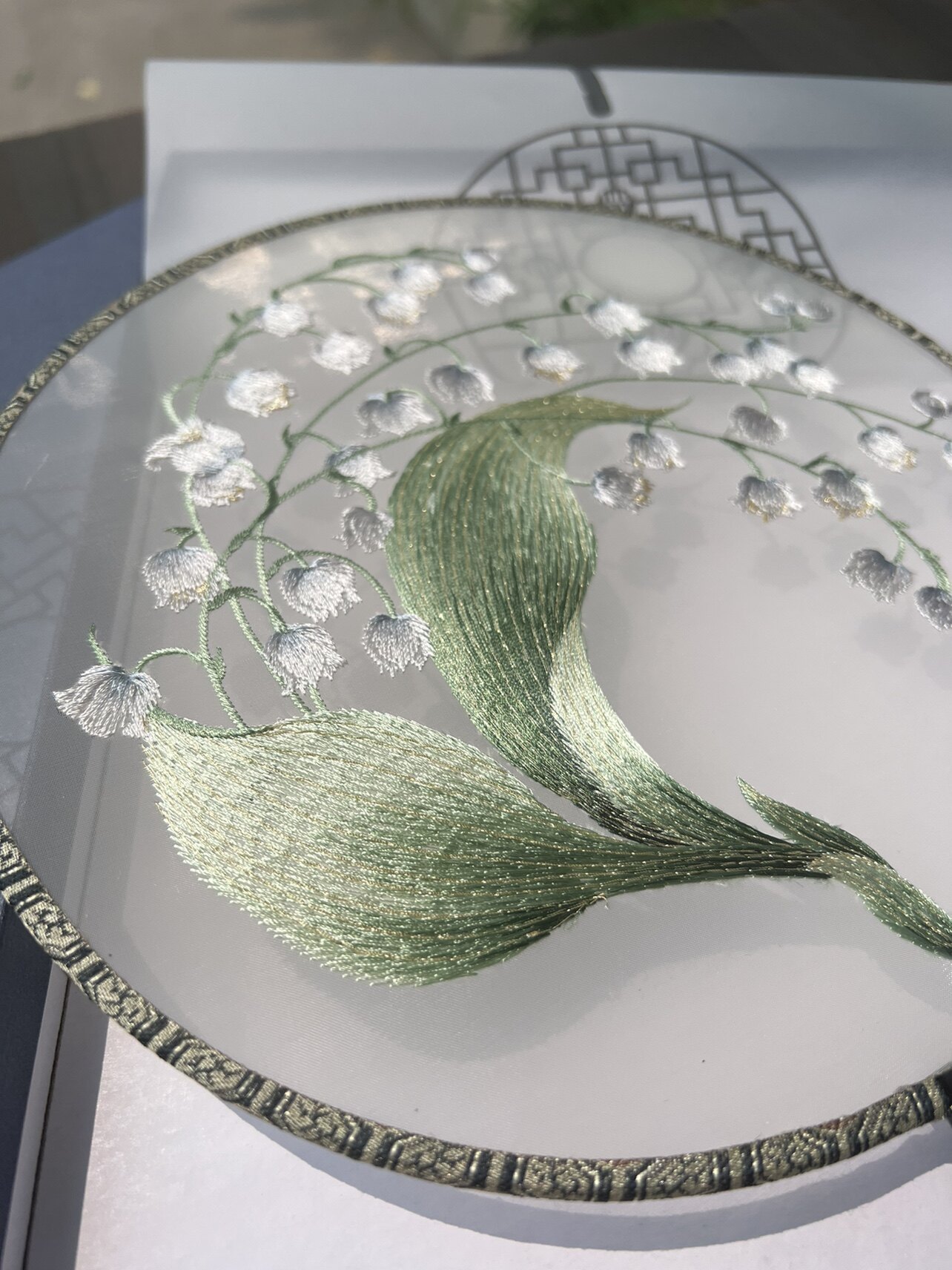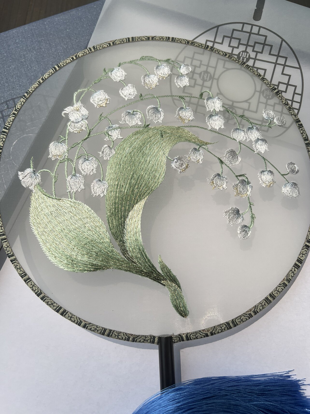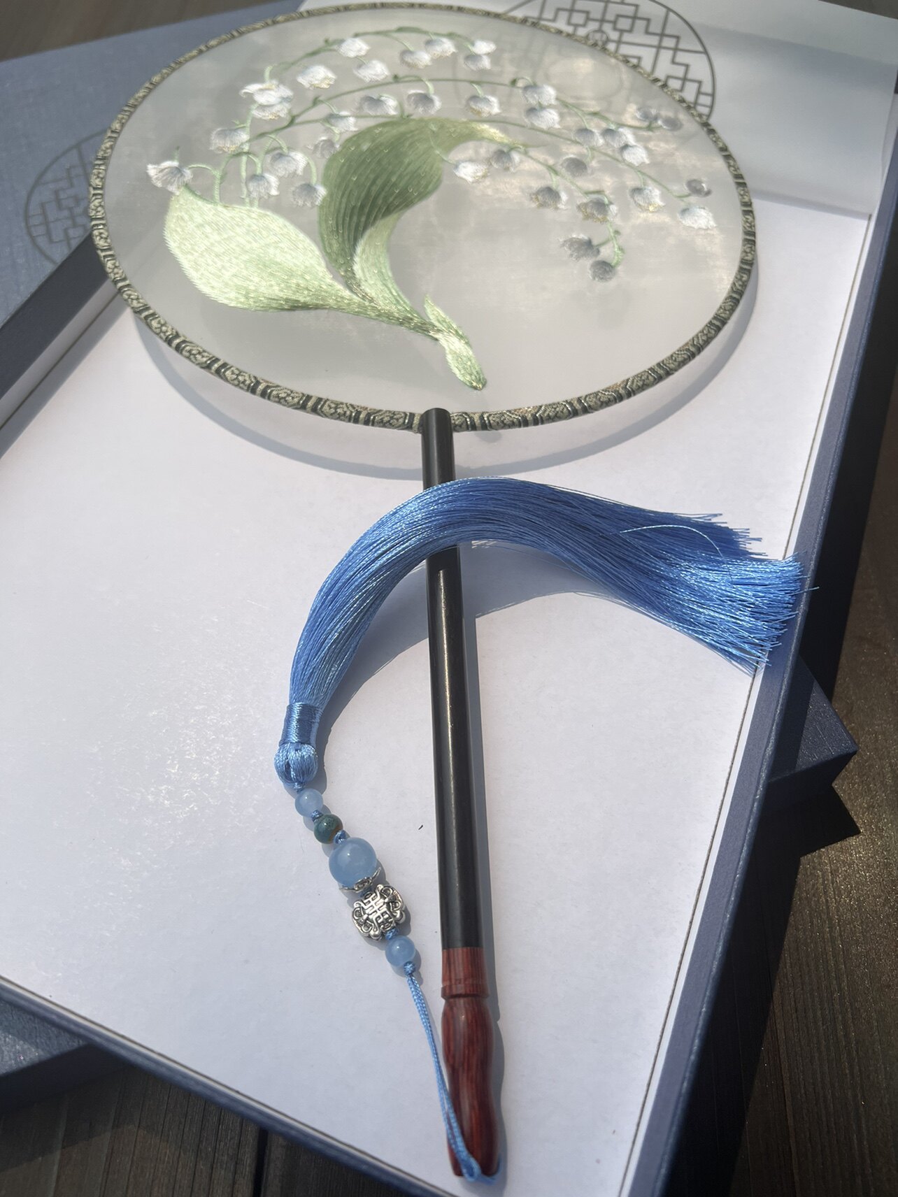 Round blue bell orchid Moxi original machine embroidered single-dough fan Hanfu cheongsam catwalk shooting dance hand-cranked