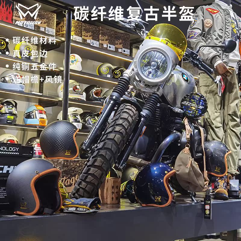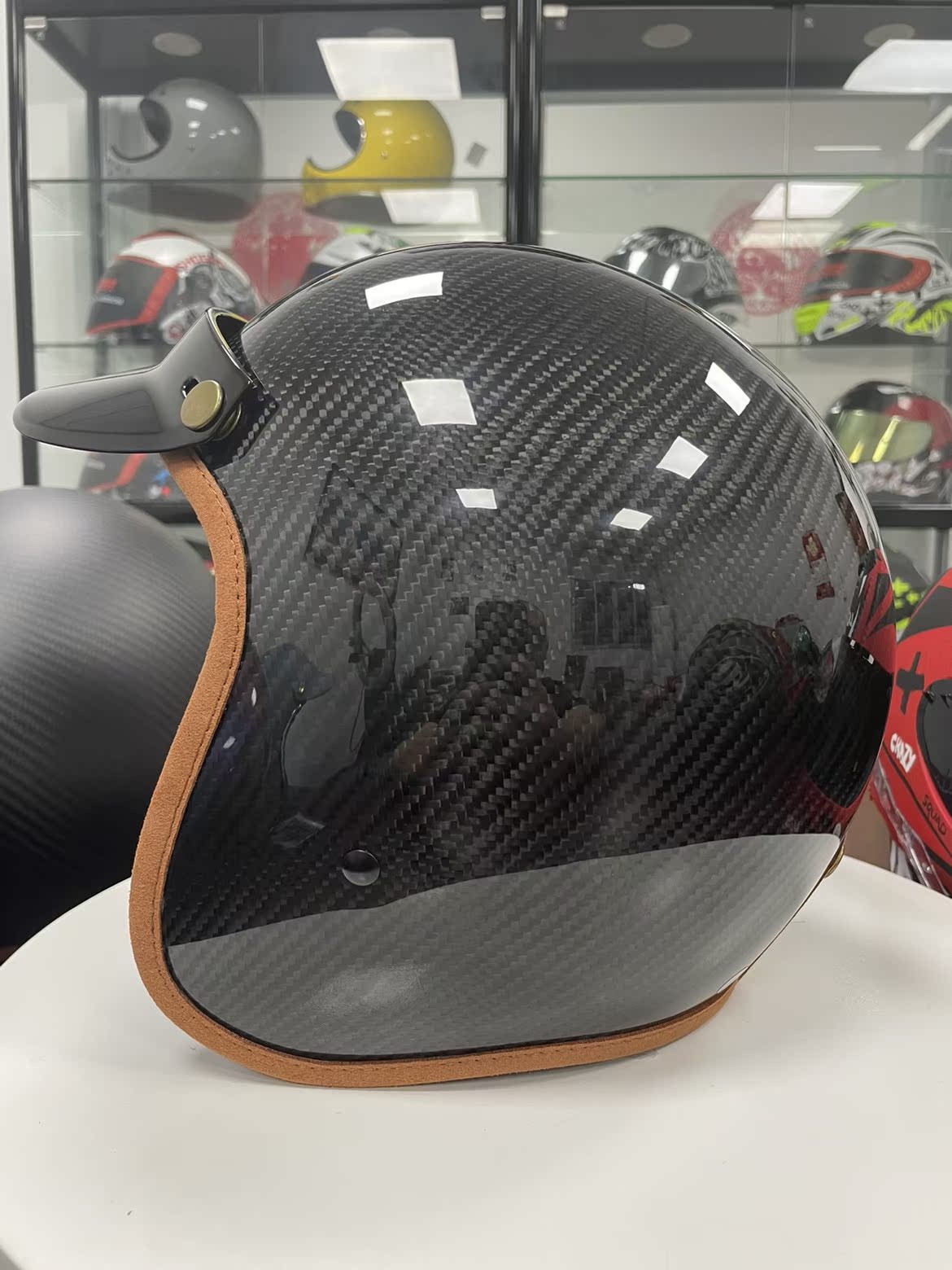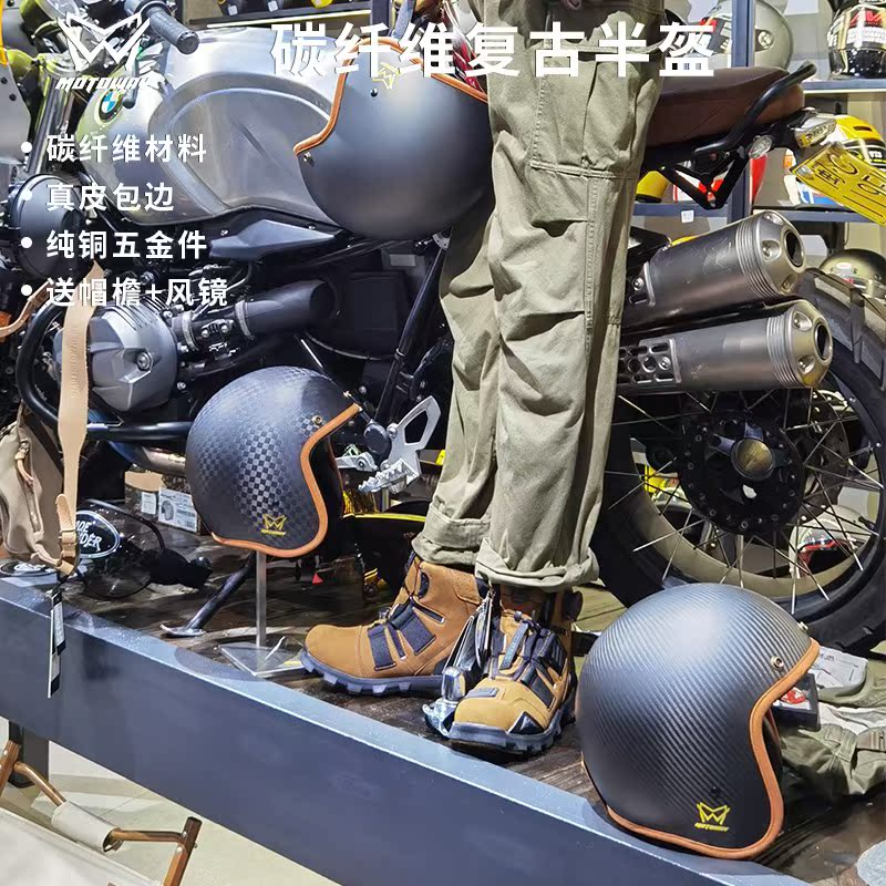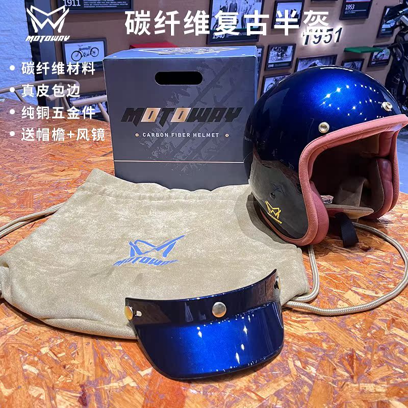 New product MOTOWAY carbon fiber retro hard hat motorcycle Harley motorcycle half helmet appearance small and light weight summer