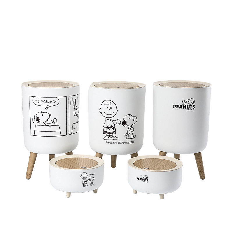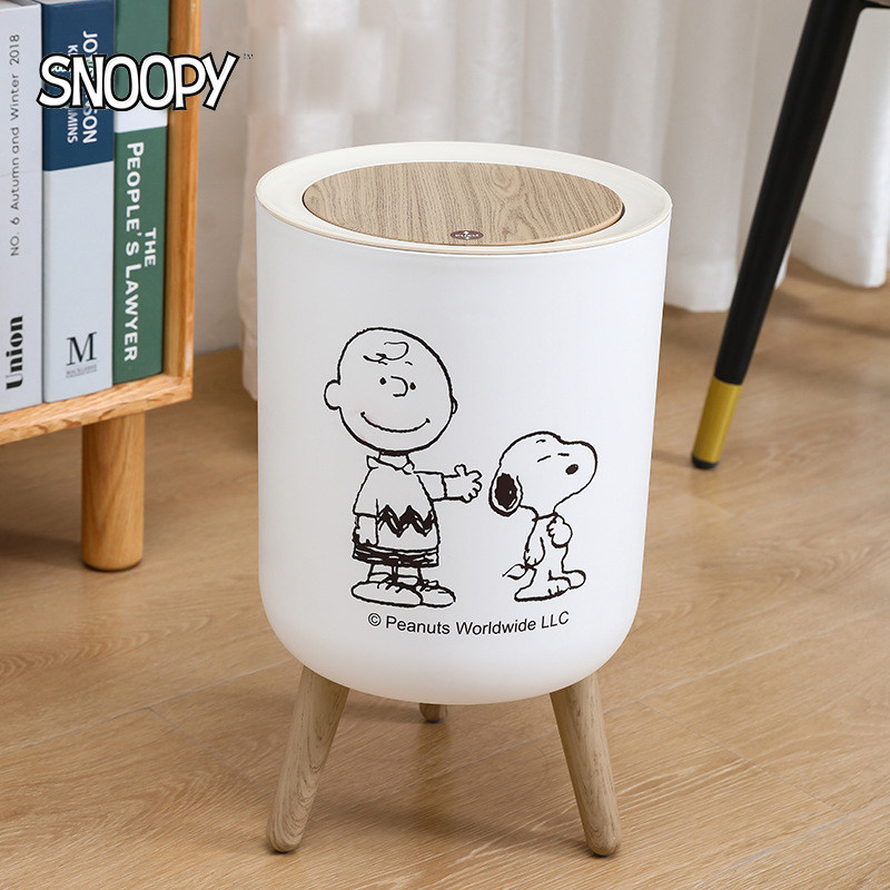 Snoopy trash can high-value high-footed trash can bedroom office simple ins wind with lid push type
