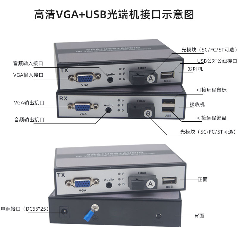VGA audio optical transmitter and receiver (single fiber single mode SC 1 pair) VGA Audio USB optical transmitter and receiver (single fiber single mode SC 1 pair) VGA audio optical transmitter and receiver (