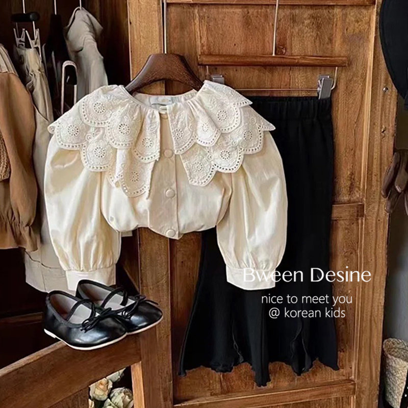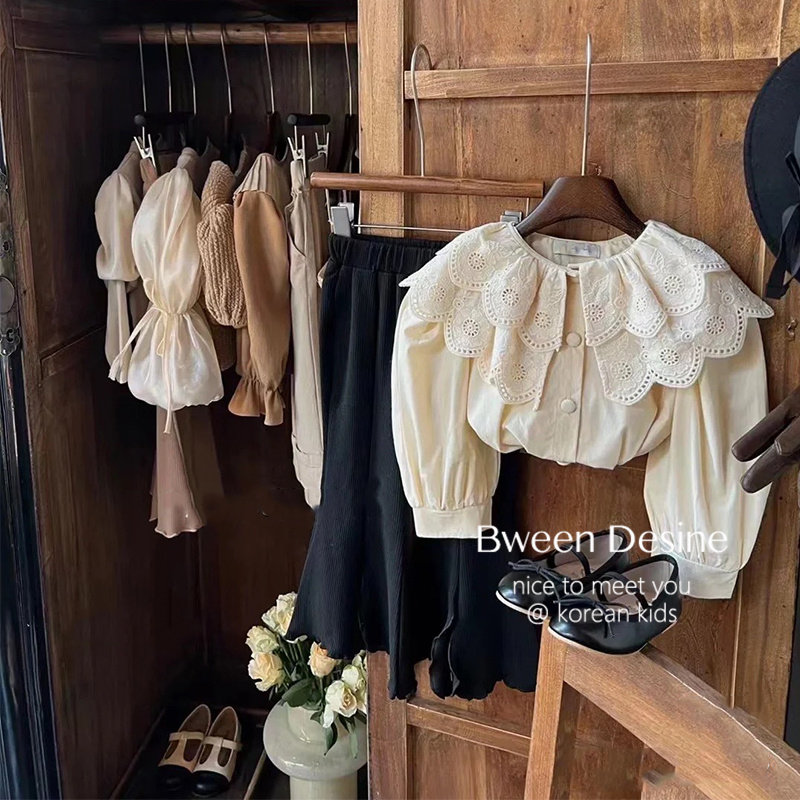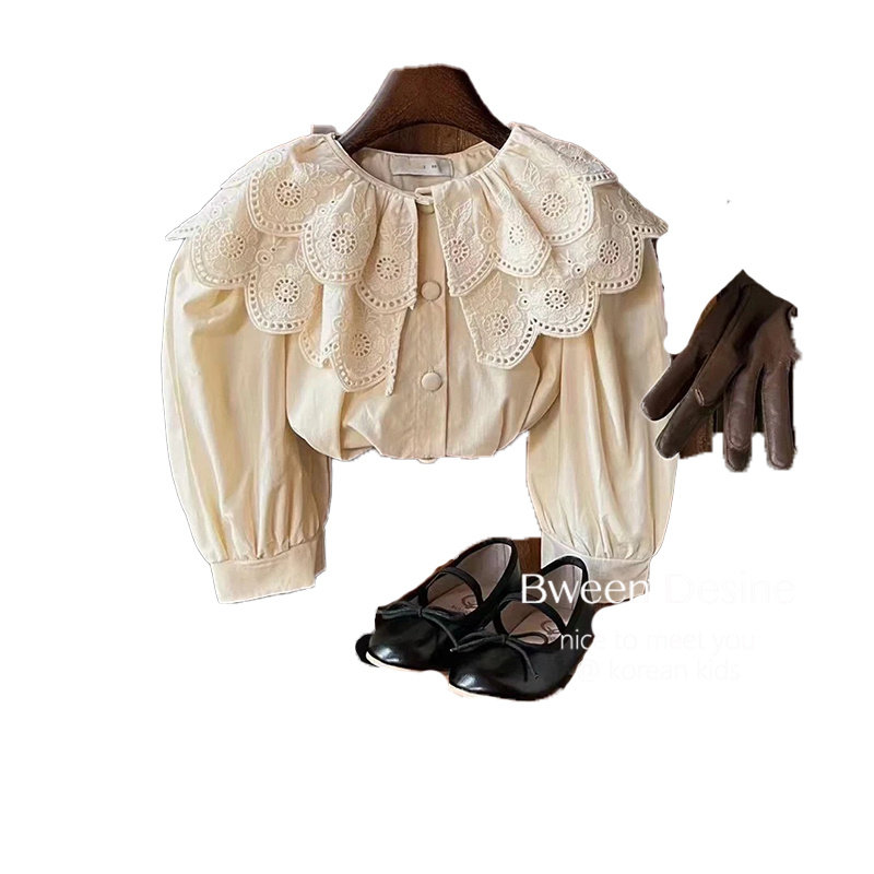 Girls' autumn shirt 22 new Korean version children's clothing Western style children's Korean casual retro embroidery lace collar top