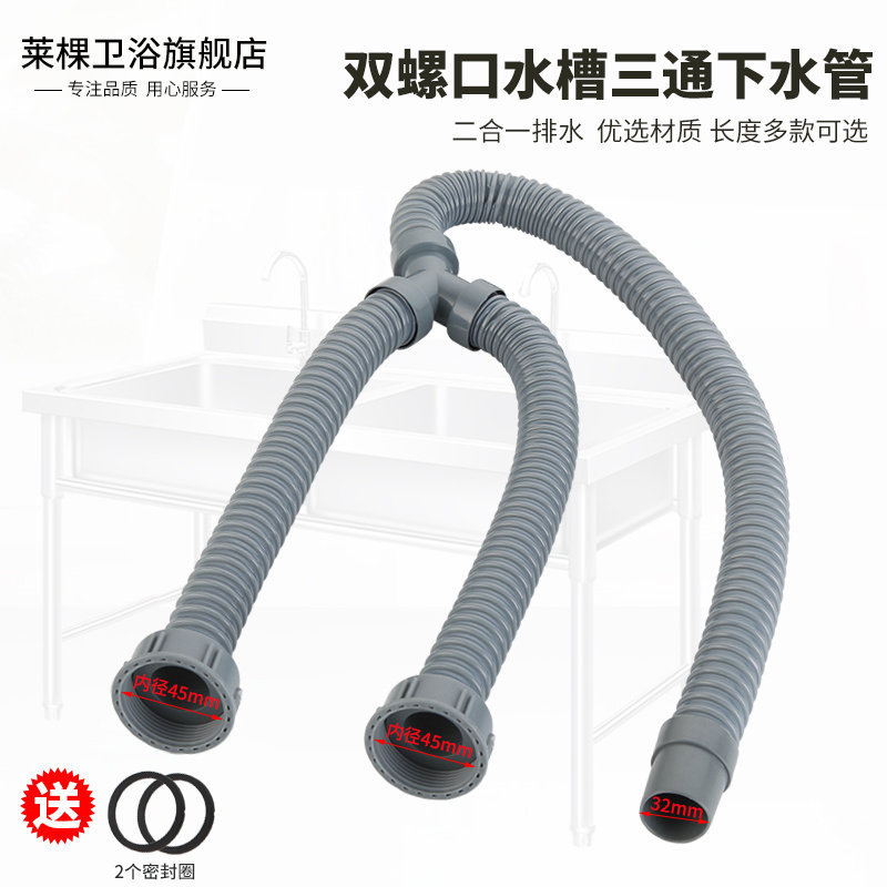 Double basin sewer pipe washing machine mop pool sewer three-way pipe two-in-one Y-type falling water extended drainage hose