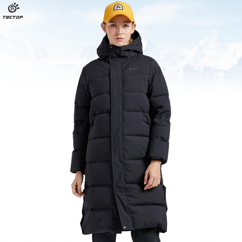 TECTOP explores outdoor winter mid-length version windproof hooded warm camouflage down jacket ladies anti-season jacket