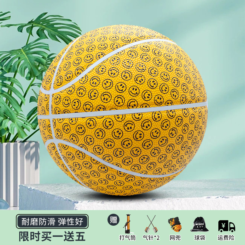 Smiling Faces Basketball Limited Edition 7 Number of yellow Ball Abrasion Resistant Teen 5 Children's Kindergarten 5 Primary School Pupils Blue Ball-Taobao
