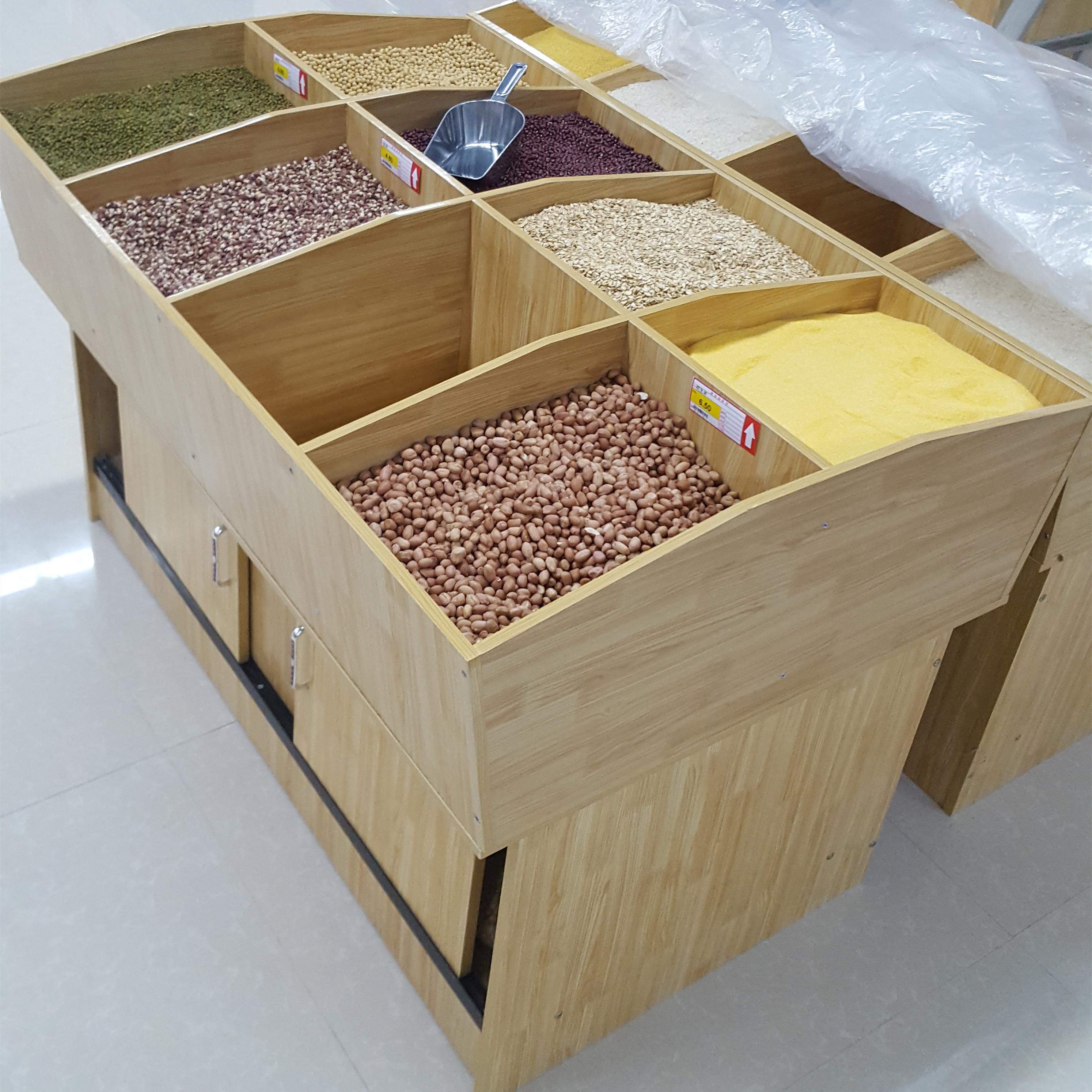 Five cereals Cereals Dried Fruits Display Cabinet Supermarket Wooden Shelf Rice Grain Bucket Rice Hopper Snack Food Shelf Bulk Cabinet-Taobao