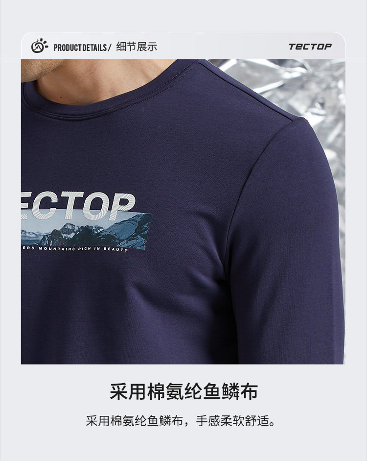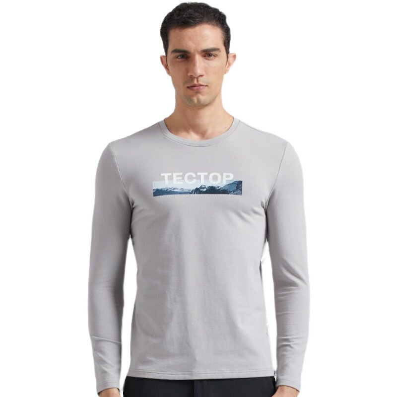 TECTOP explores outdoor autumn round cotton T-shirts men's elastic comfort and breathable sports leisure long sleeves