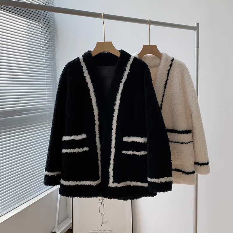 Haining 2022 winter new real lamb fur coat women's V-neck mid-length sheep shearling fur coat