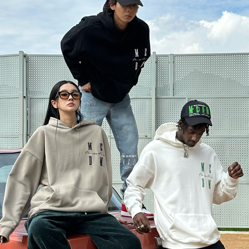MEDM tide brand autumn embroidery logo hoodie sweater men and women American street couple models loose national tide tops