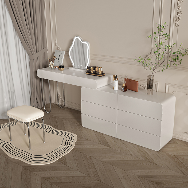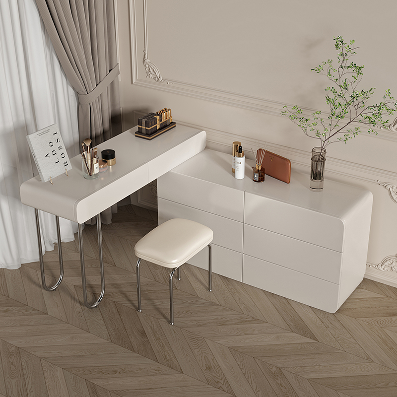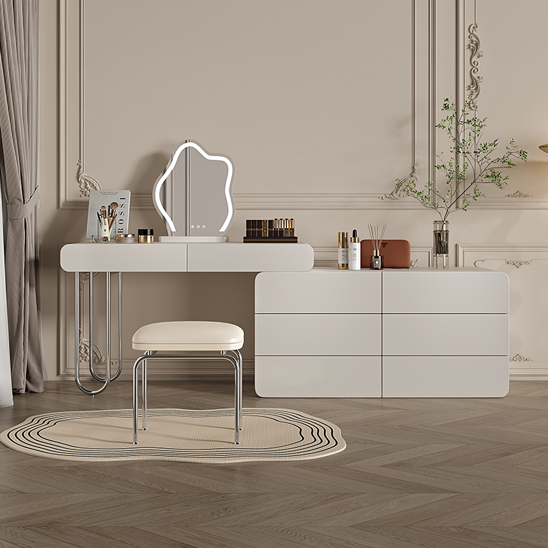 Bedroom solid wood dressing table storage cabinet one light luxury dressing table net red French cream white retractable makeup table