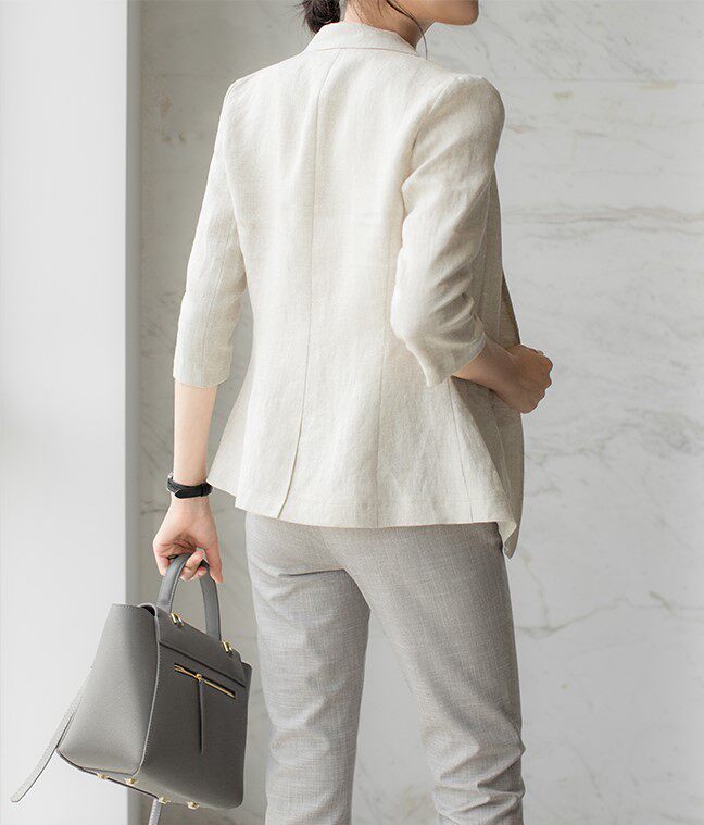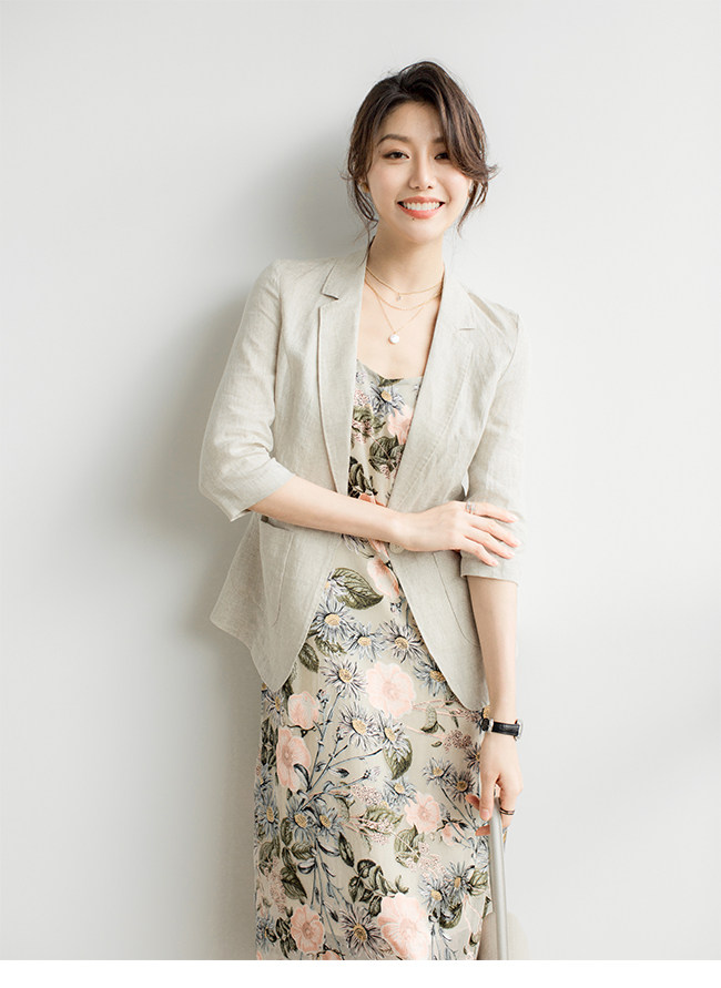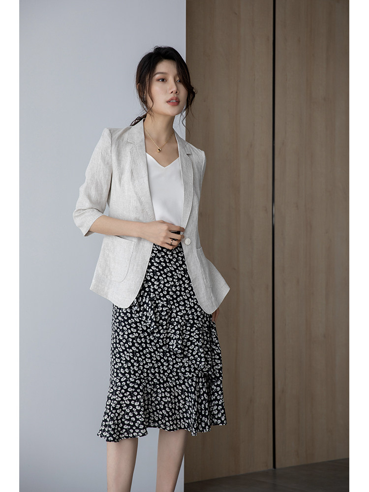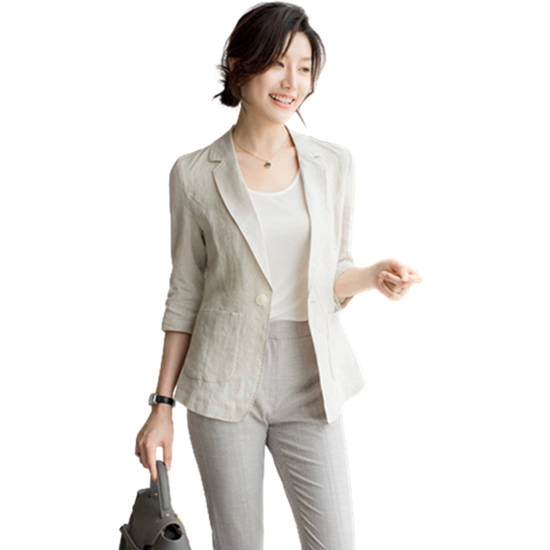 Sandro Hepburn22 spring and autumn new natural linen one button thin section three-quarter sleeve slim suit jacket
