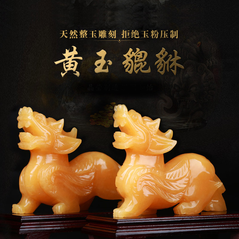 Jade Pixiu Pair Decoration Home Living Room Entrance New Chinese Office Desktop Place Topaz Pixiu Ornament