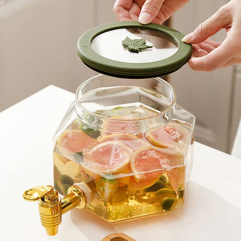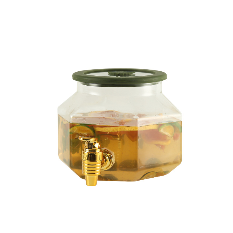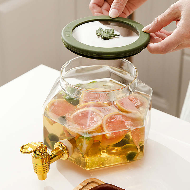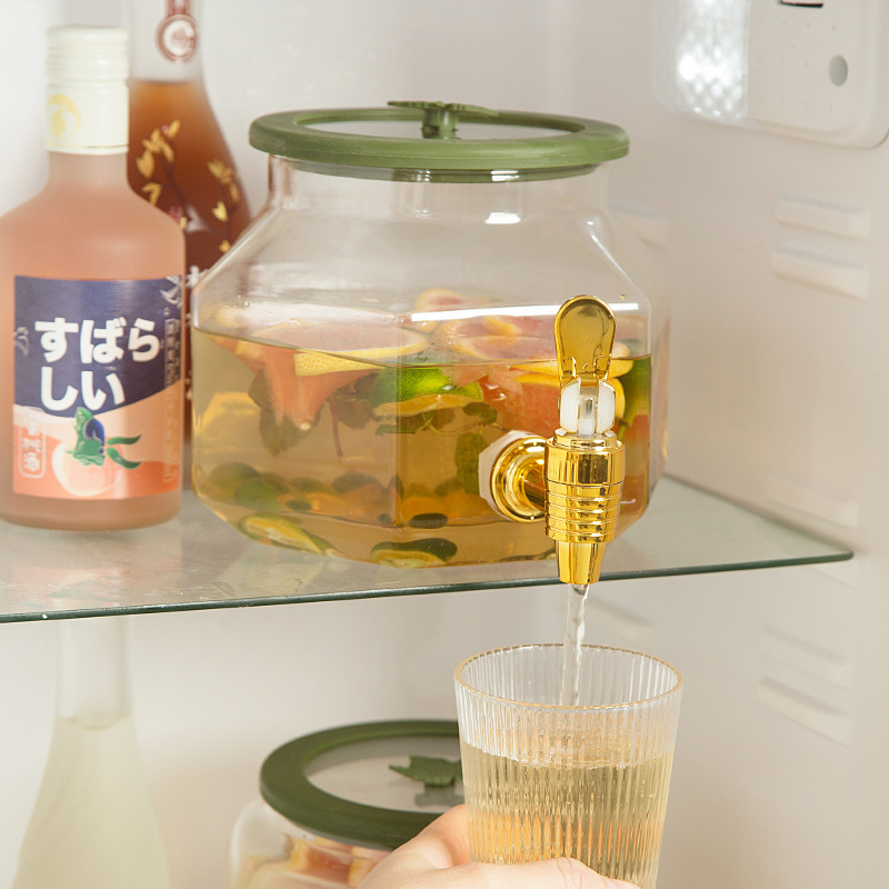 Onot Fridge Glass Cold Kettle With Tap Drink Barrel Home Resistant Warm Water Fruit Tea Juice Barrel Large Capacity