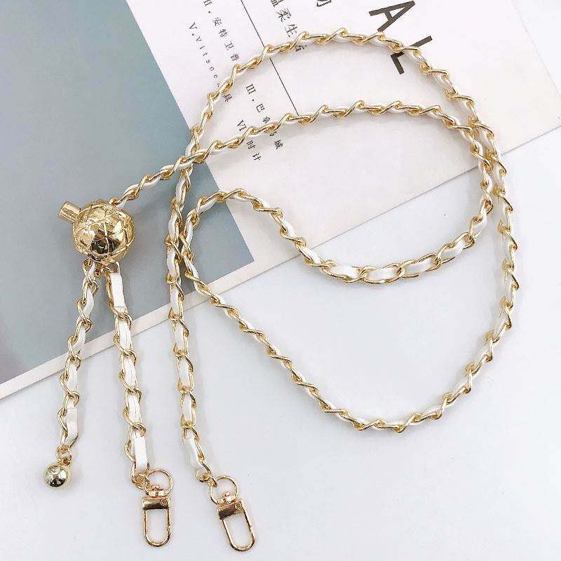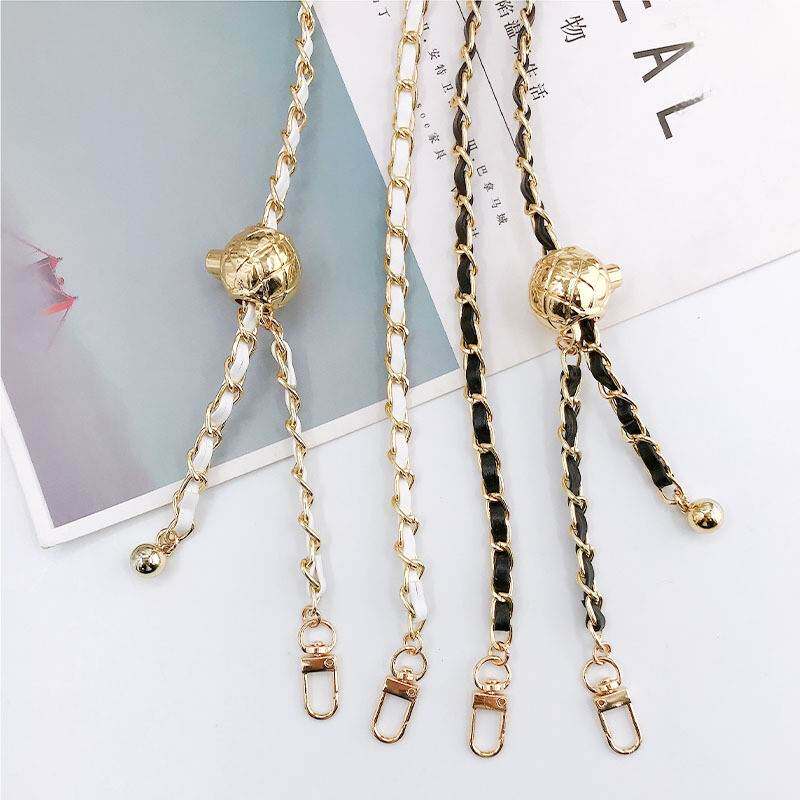 New leather metal chain retractable adjustable crossbody chain mobile phone lanyard lady bag chain shoulder strap
