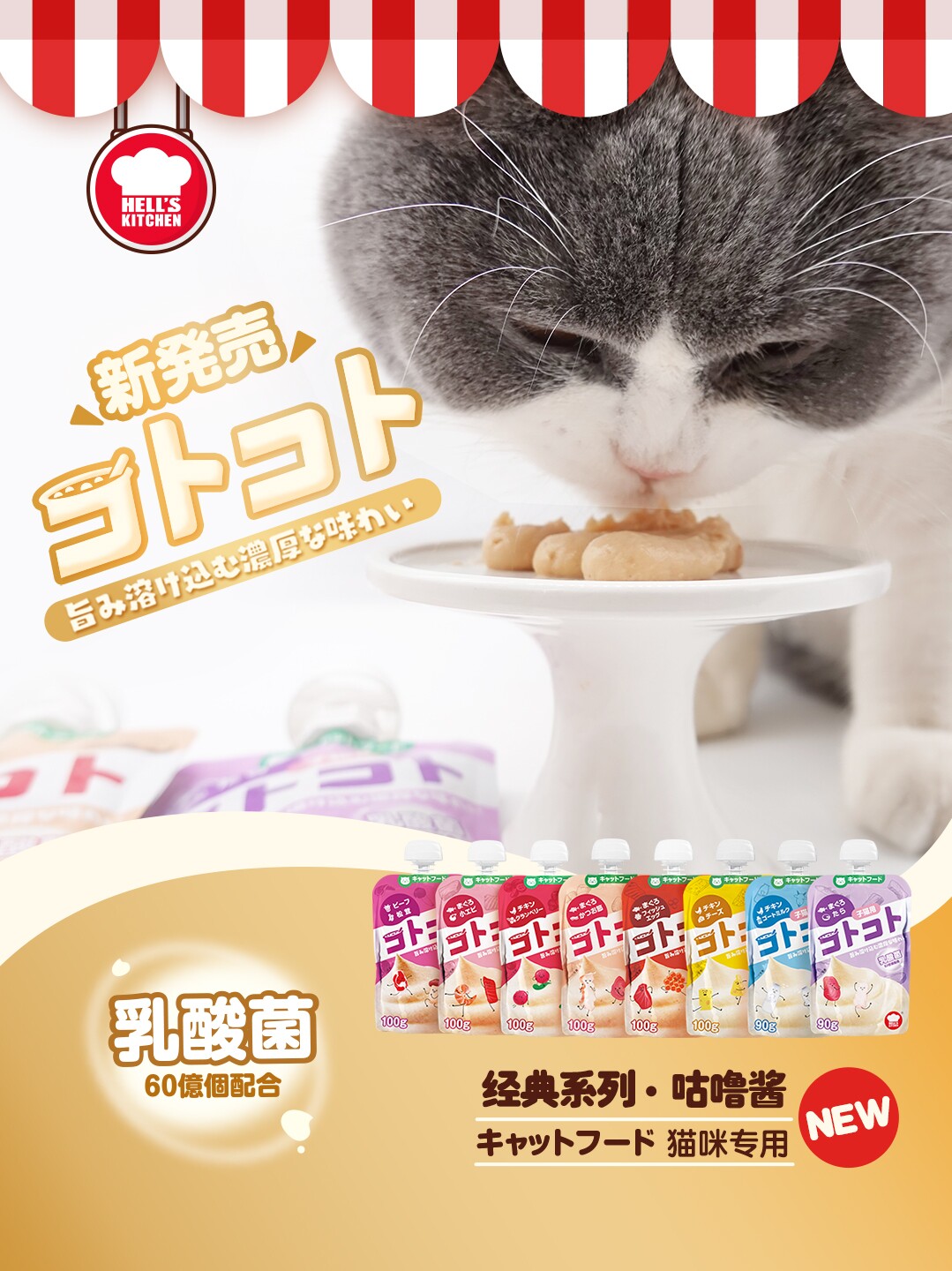 Hell's Kitchen Gulu Sauce Nutritional Fattening Cat Strips Meat Mud Sauce Liquid Adult Cat Kitten Snacks Wet Food Pack Cat Canned Food
