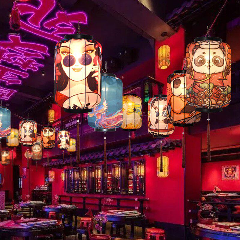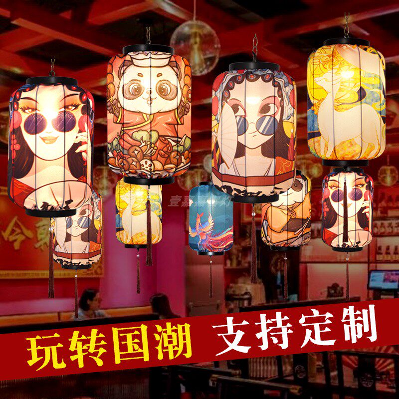 Chinese-style national tide style hot pot restaurant scenic spot fabric lantern ancient town decorative lantern outdoor waterproof sunscreen custom chandelier