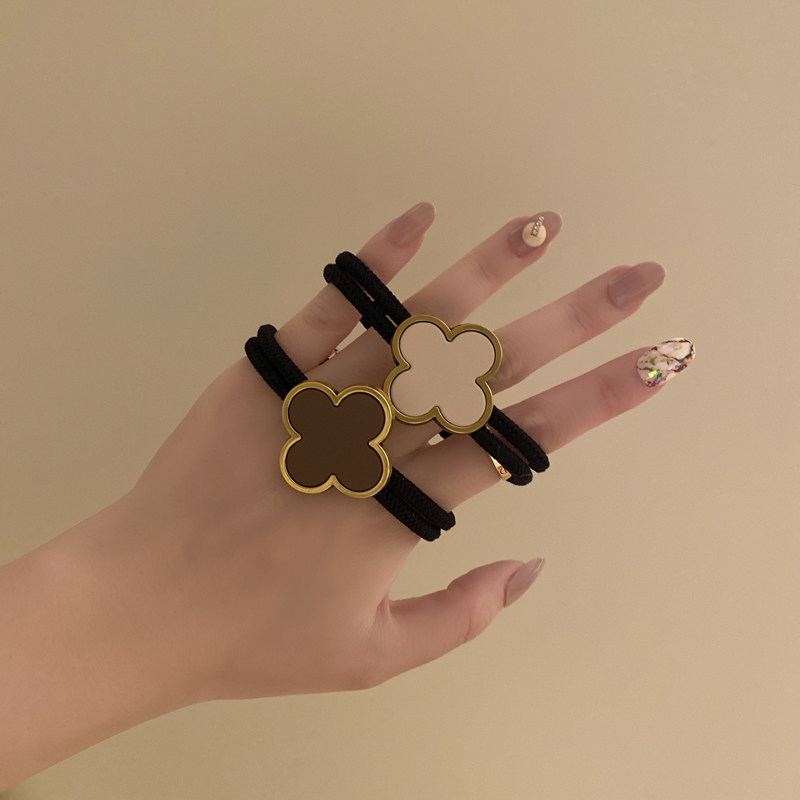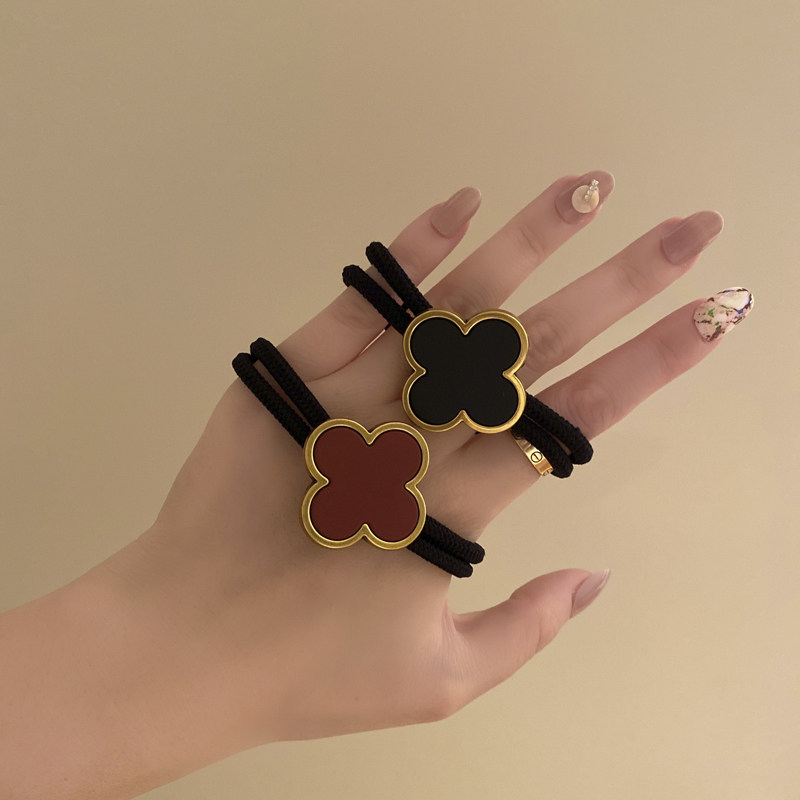 Korean four-leaf clover high-end head rope women's summer not strangled hair simple temperament ponytail tied hair ring black leather case