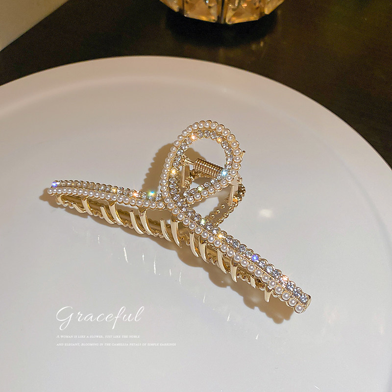 Pearl rhinestone hair clip large summer dish hair shark clip high-end hair accessories 2021 new hairpin