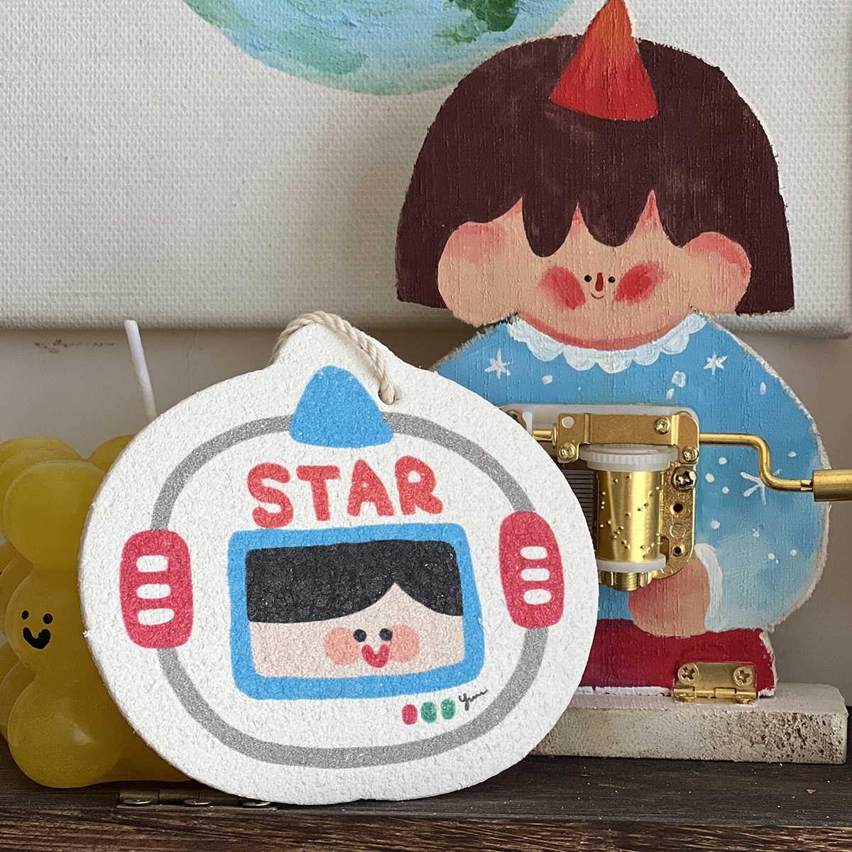(Baa Baa Ball) Original Astronaut Avatar Dishwashing Sponge Wood Pulp Sponge Wipe Kitchen Cleaning Scrub