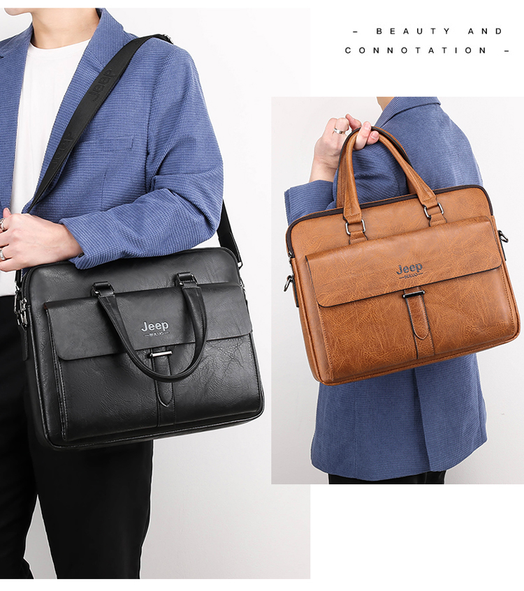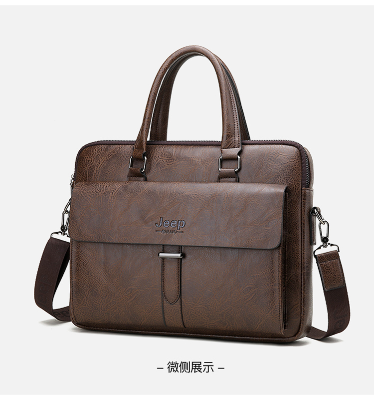jeep Jeep men's bag business handbag briefcase men's casual horizontal section soft side shoulder men's bag hand bag