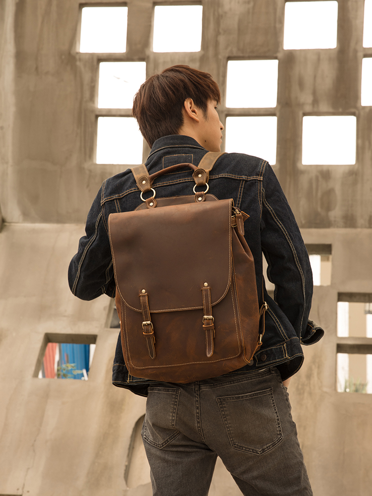 Smithxin Handmade Leather Shoulder Bag Male Young Bull Leather Personality Shoulder Backpack Travel Computer Bag Brand Male Bag