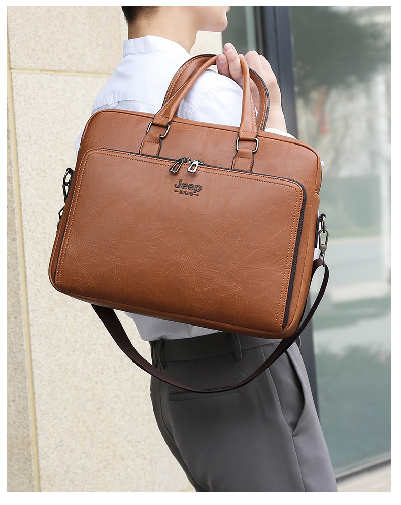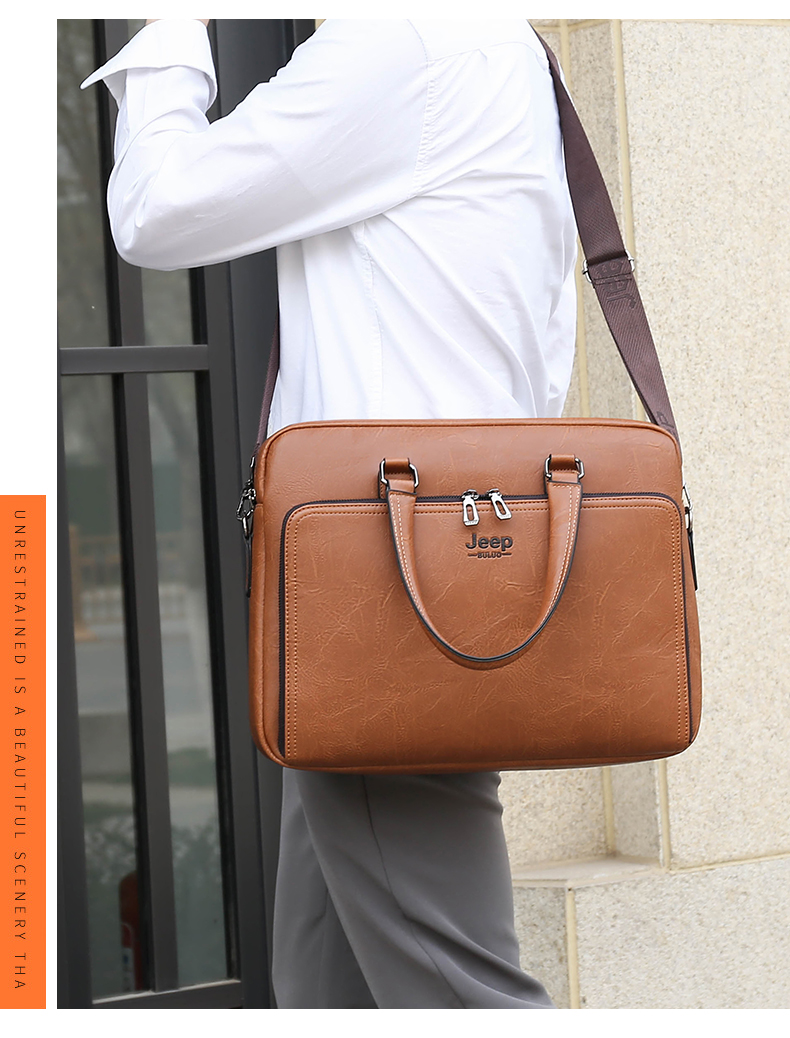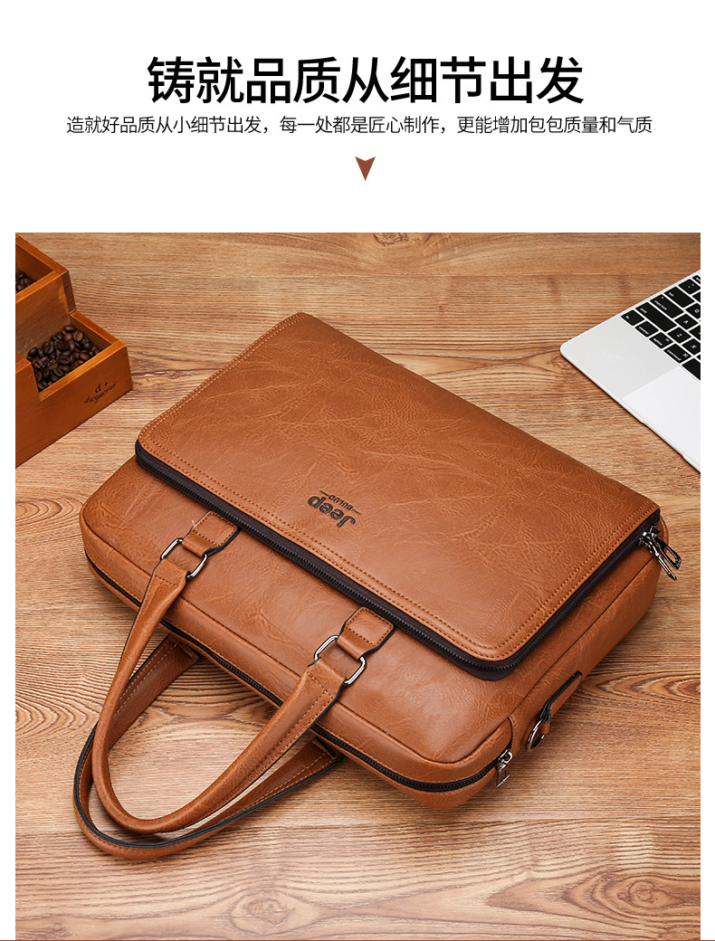 Men's Handbag Hand Holding Briefcase Genuine Leather Texture Business Casual One Shoulder Diagonal Men's Leather Bag Retro Computer Bag