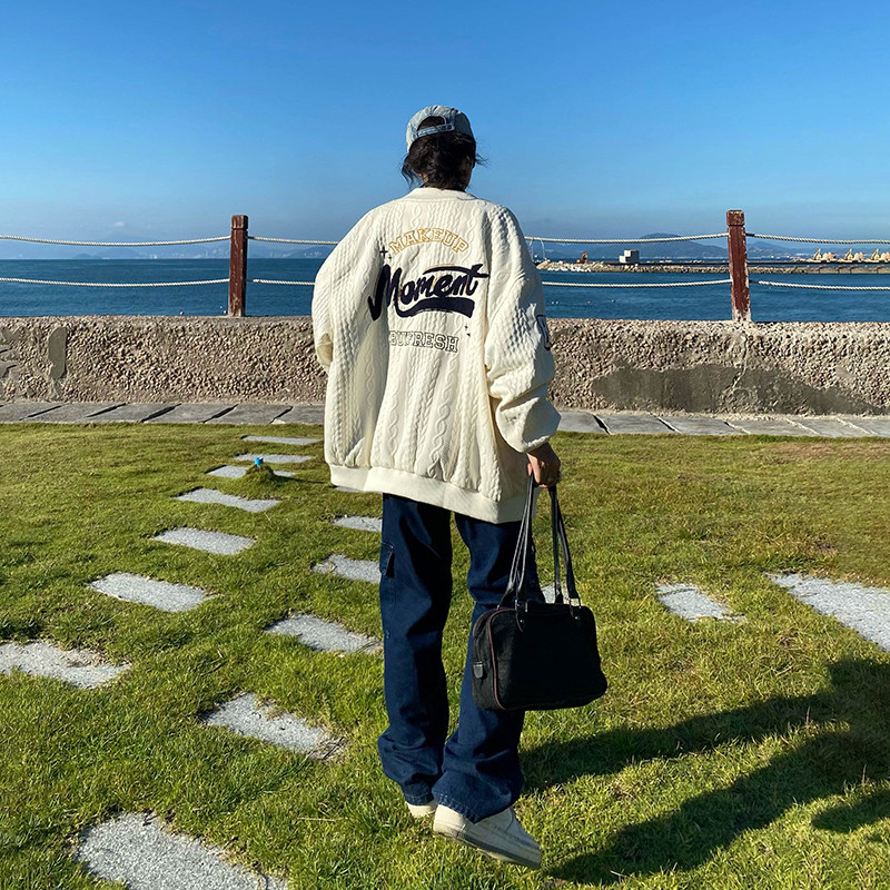 MAIKAO American retro knitting coat women sweater loose couple vintage baseball jacket male autumn