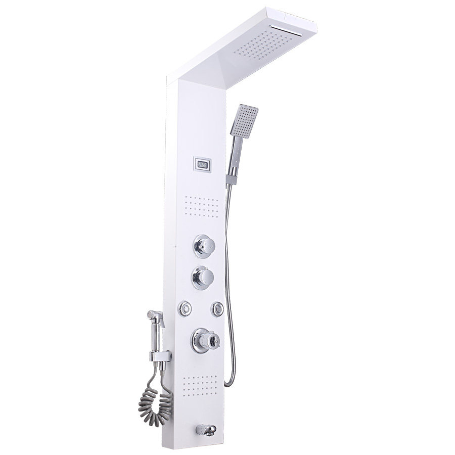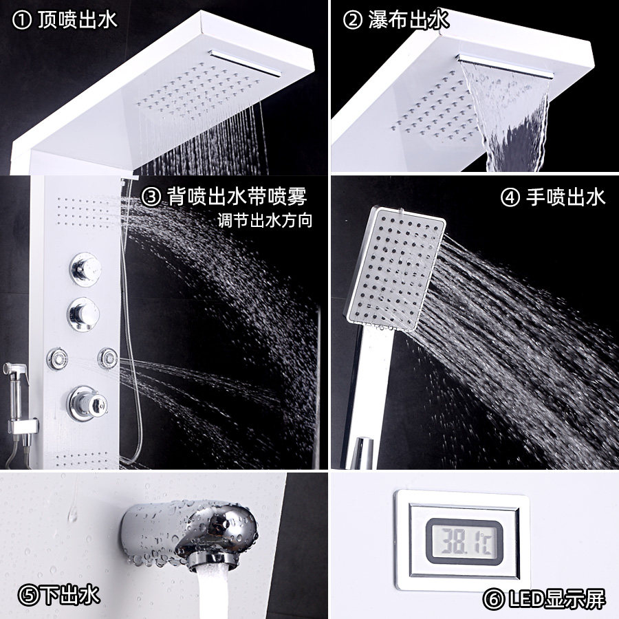 White constant temperature shower screen shower set pressurized rain room all copper home bathroom shower column sprinkler digital display gray