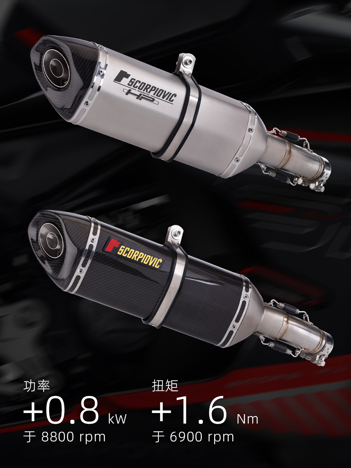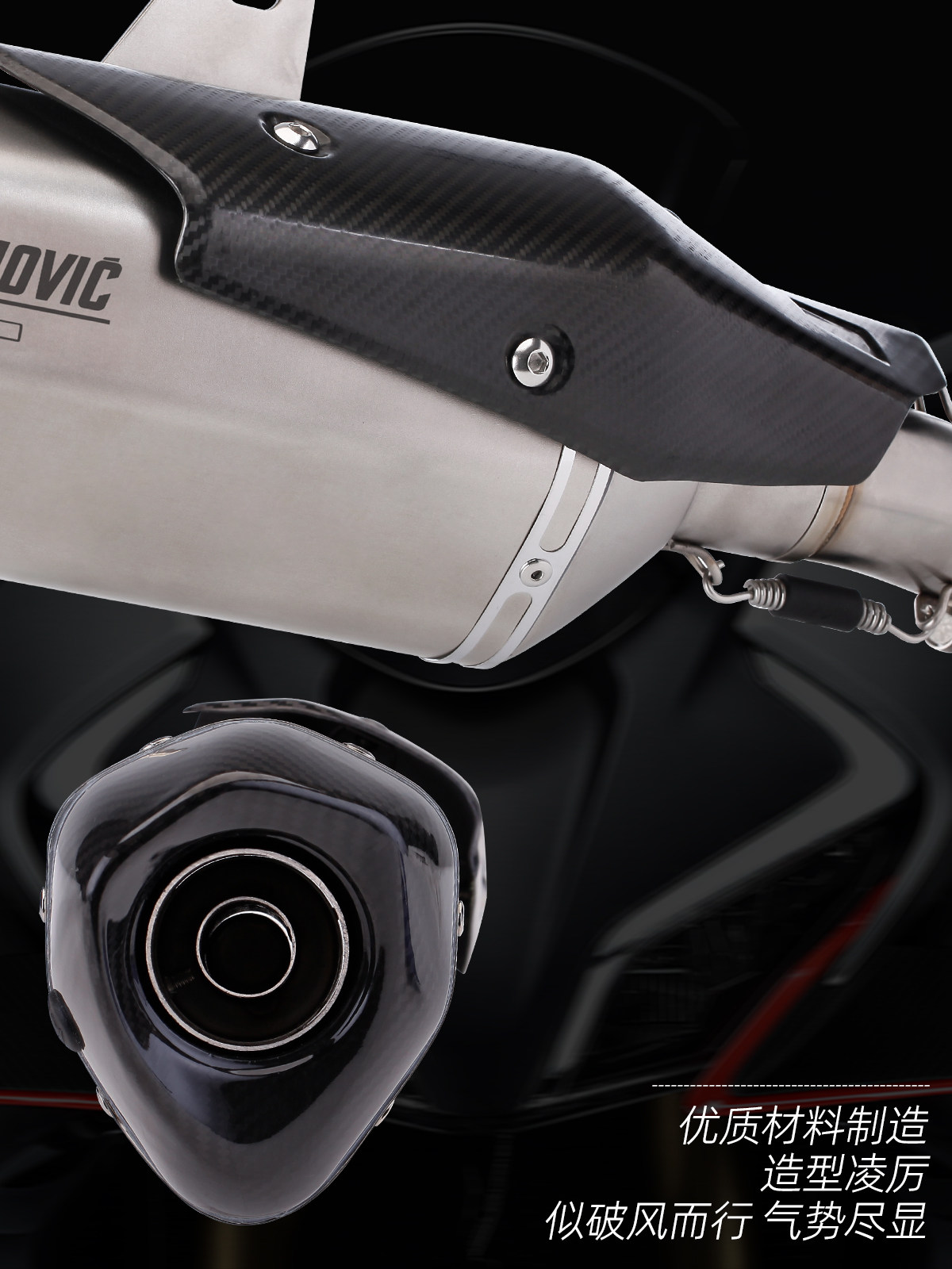 Locomotive modified exhaust pipe Spring Breeze 450SR stainless steel mid-section exhaust modified large hexagonal carbon fiber tail section