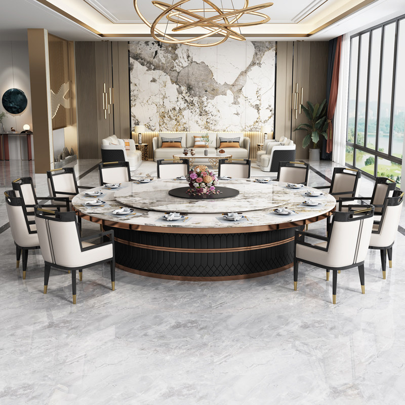 Hotel electric dining table large round table custom 16 20 people hotel hot pot table club room private room solid wood banquet table and chairs