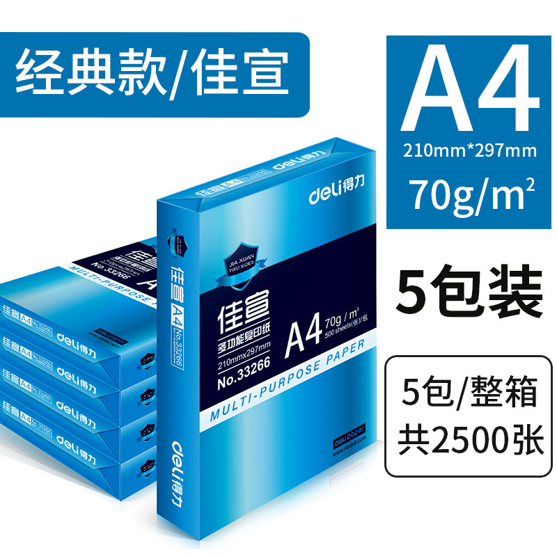 ***Contact customer service before placing an order for discounts*** Special price Deli A4 random 70 grams per box 5 packs Deli Kairui 70 grams A4 five packs Deli Jiaxuan A4 paper 5 packs per box 70 grams