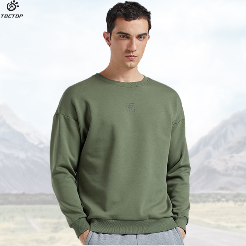TECTOP explores outdoor autumn and winter plus velvet warm pullover round neck thick cotton T men's sports casual clothes tide brand