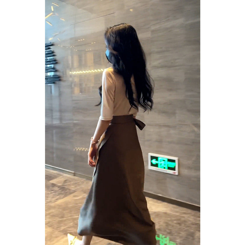 Apricot blouses true silk half-body dress