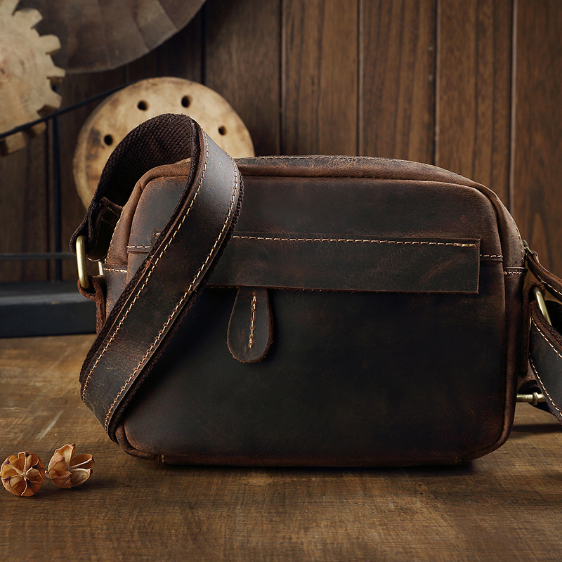 Carpenter Xin original handmade cowhide bag men's leather casual small bag crazy horse leather horizontal section men's bag mini shoulder messenger bag