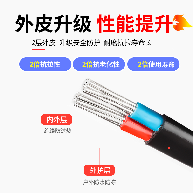 National Label 2 Core Sheath Wire Aluminum Core Home Outdoor Wire 4 6 10 16 25 Square Wire Double Core Aluminum Cable-Taobao