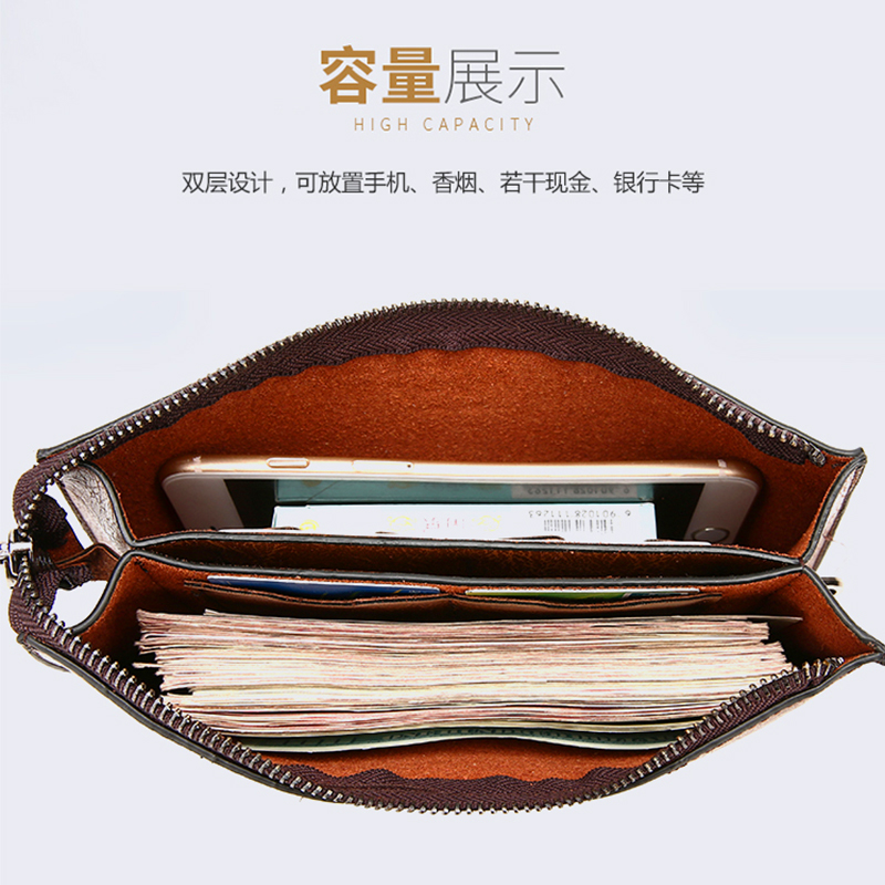 Men's clutch bag, long section with zipper, multi-functional large-capacity wallet, driving position trendy business can put mobile phone