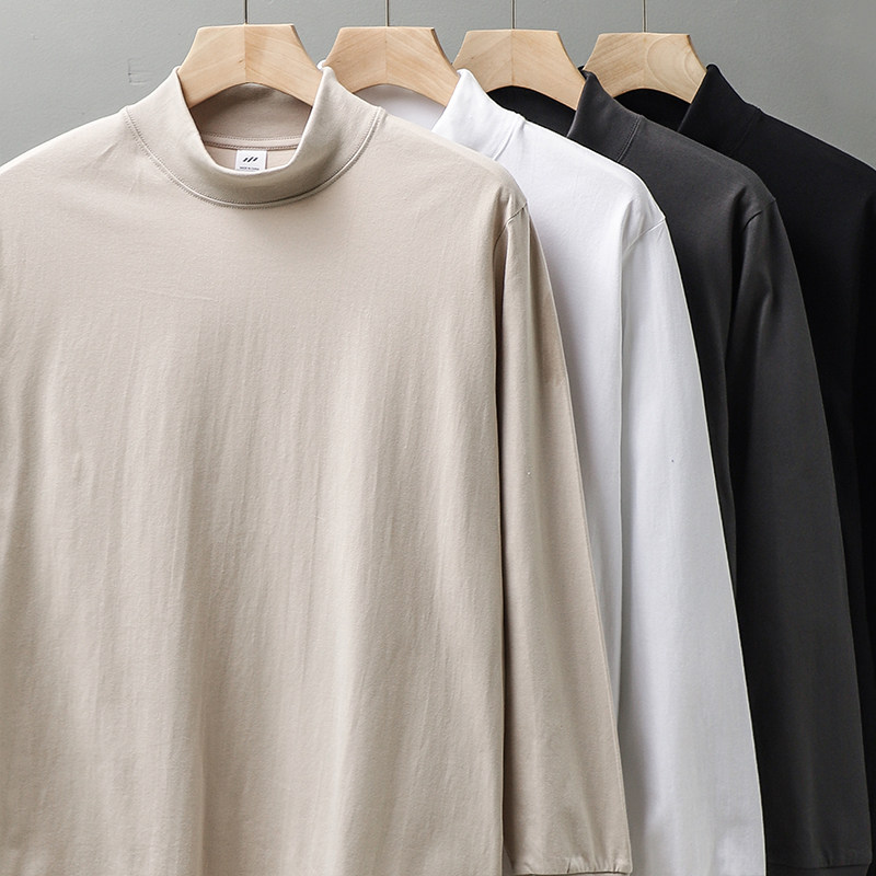 Day Department 280G Heavy and half high collar Bottom Jersey Man Pure Cotton Sweatshirt Spring Autumn Money Loose Inner Lap Pure color long sleeve t-shirt-Taobao