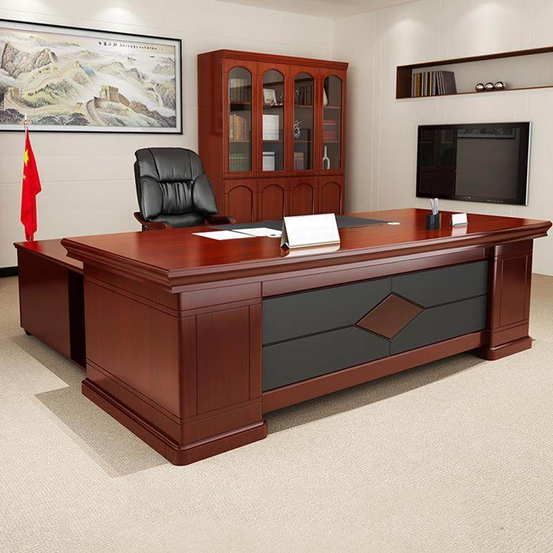 Office Furniture Large Class Table Owner Table New Chinese President Table Solid Wood Leather Paint Manager Head Chair Combination-Taobao