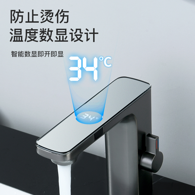 German wocam gun gray and white basin faucet intelligent induction digital display hot and cold all copper household undercounter basin