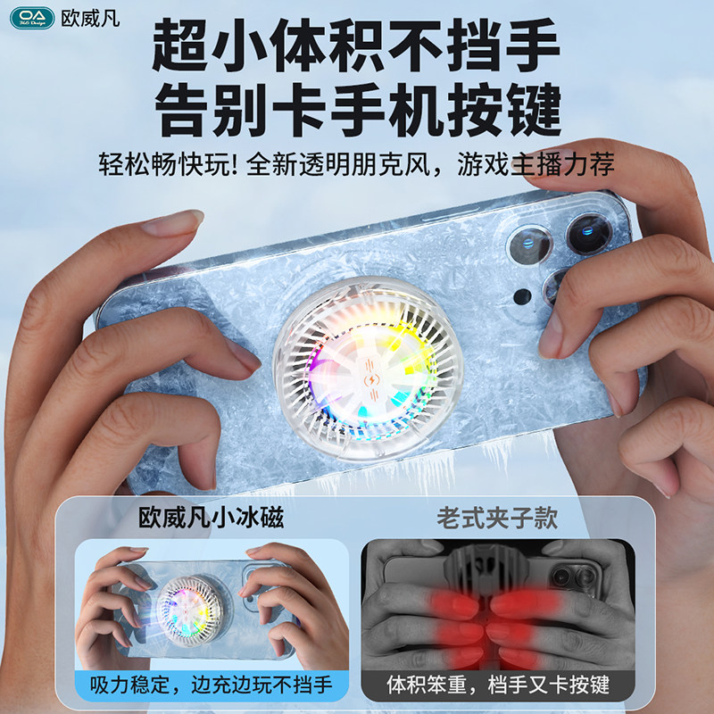 Transparent magnetic mobile phone radiator semiconductor refrigeration cooling artifact suitable for black shark back clip water cooling fan red magic iqoo chicken game Apple 12 wireless charging tablet ipad live dedicated