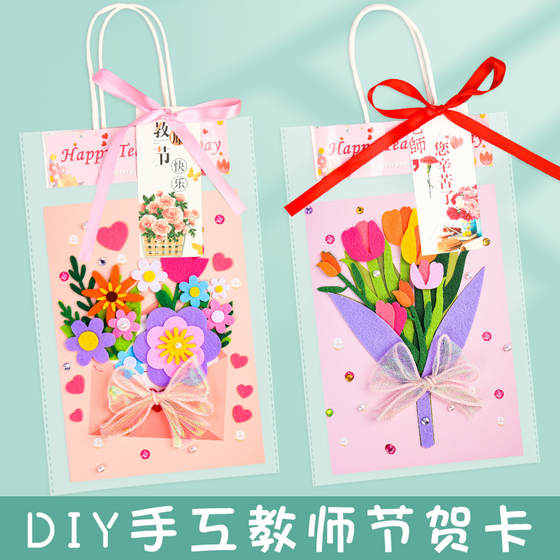 Handmade greeting card DIY material teacher's day gift kindergarten primary school to send teacher three-dimensional non-woven thanksgiving card