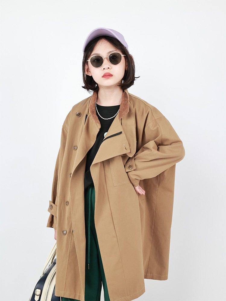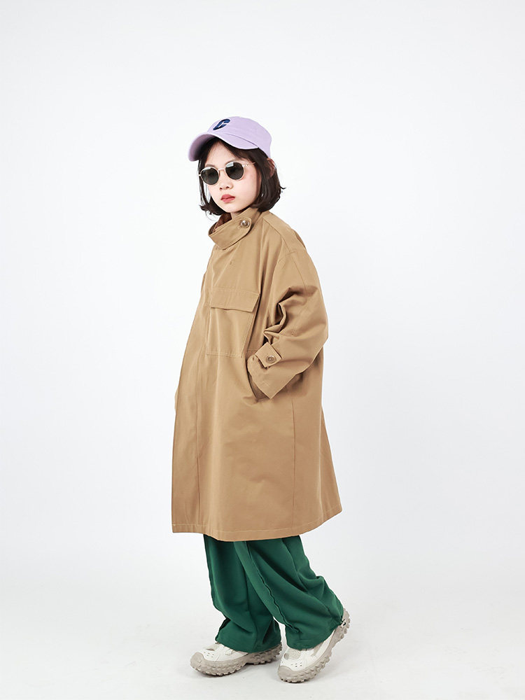 Congjia girls' big-name tooling windbreaker 2022 autumn new children's middle-aged and older children's Korean version casual mid-length coat