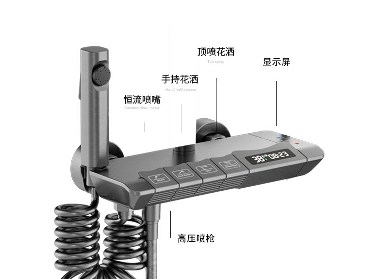 Japan TOITYE copper intelligent thermostat display keys white shower shower set gun grey simple shower
