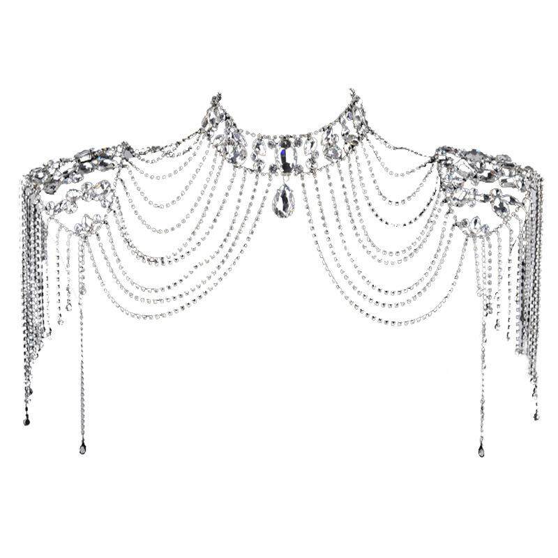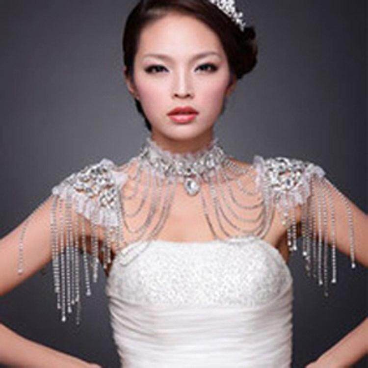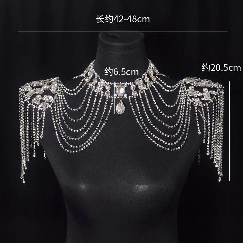 Bridal wedding dress accessories European and American dress handmade shawl shoulder chain new rhinestone necklace beads pearl performance shoulder ornaments pure