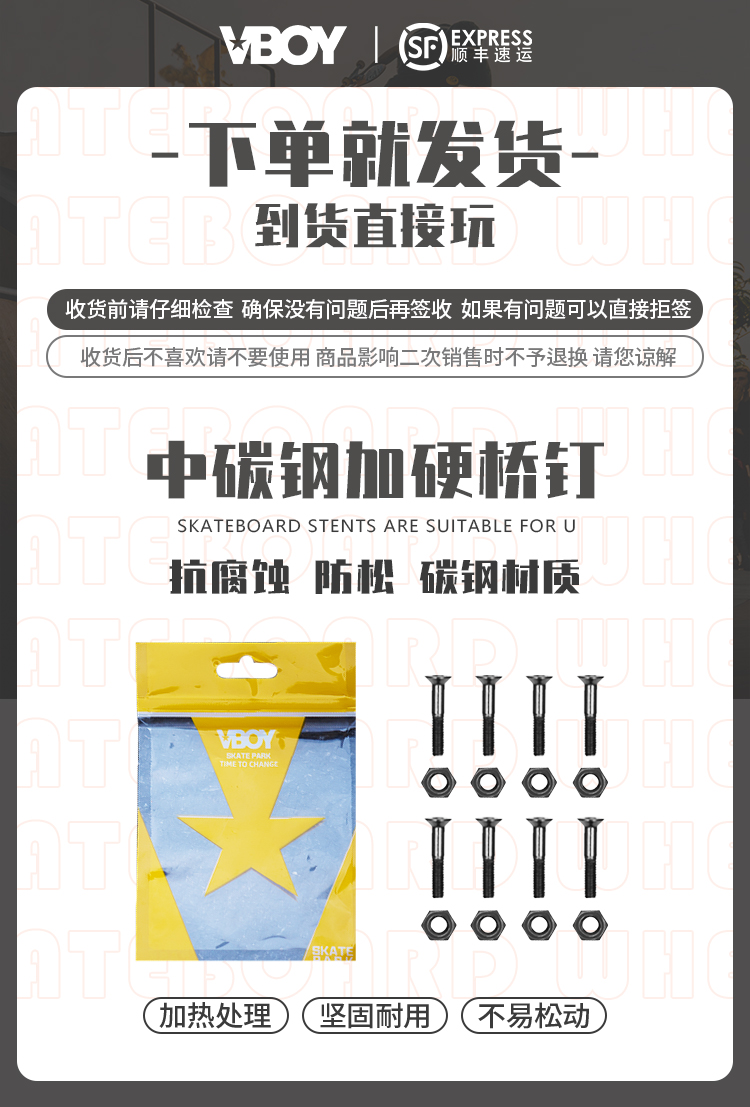 VBOY Professional Skateboard Long Board Land Surfboard Double Teething Inner 6 Corner Professional Carbon Steel Bridge Nails (8 pairs) -Taobao