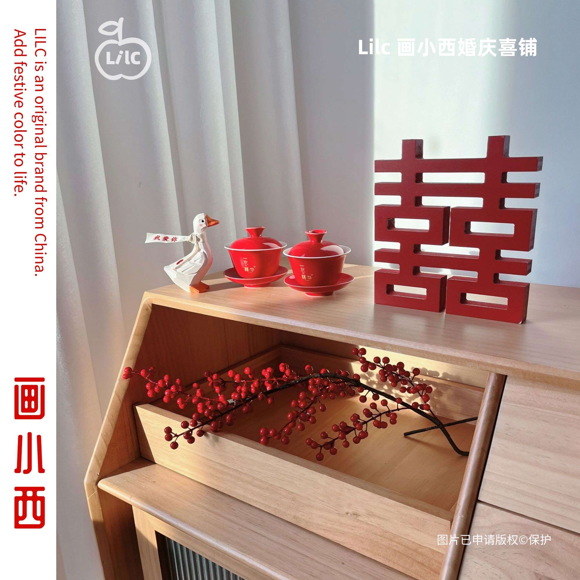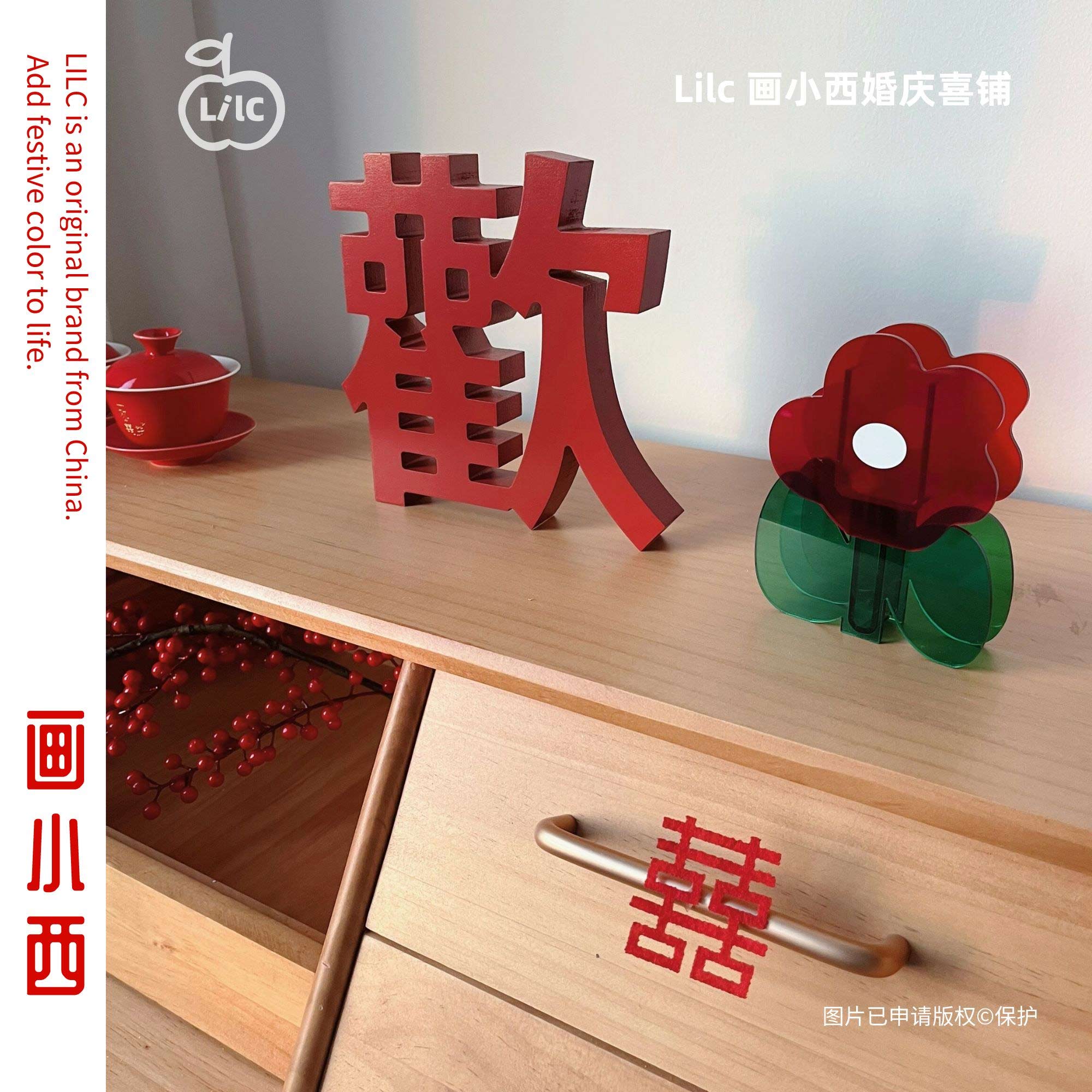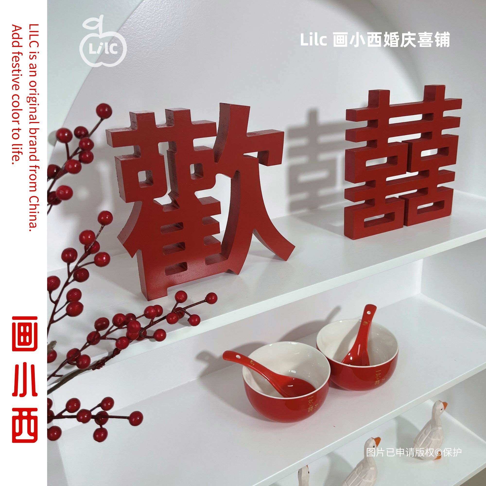 Lilc's home wooden three-dimensional red hi character decoration creative wedding Chinese living room wedding wedding room decoration decoration