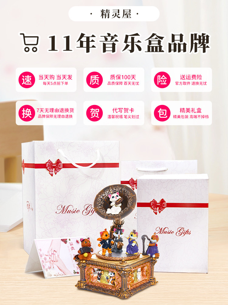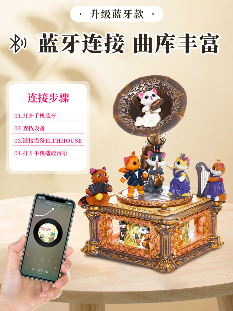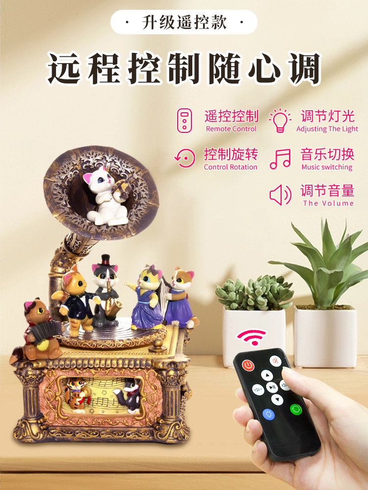 Kitty Gramophonic Machine Spin Music Octaonic Box Diy Birthday Gift Girl Sends Wife Girl Girl Girl-Taobao