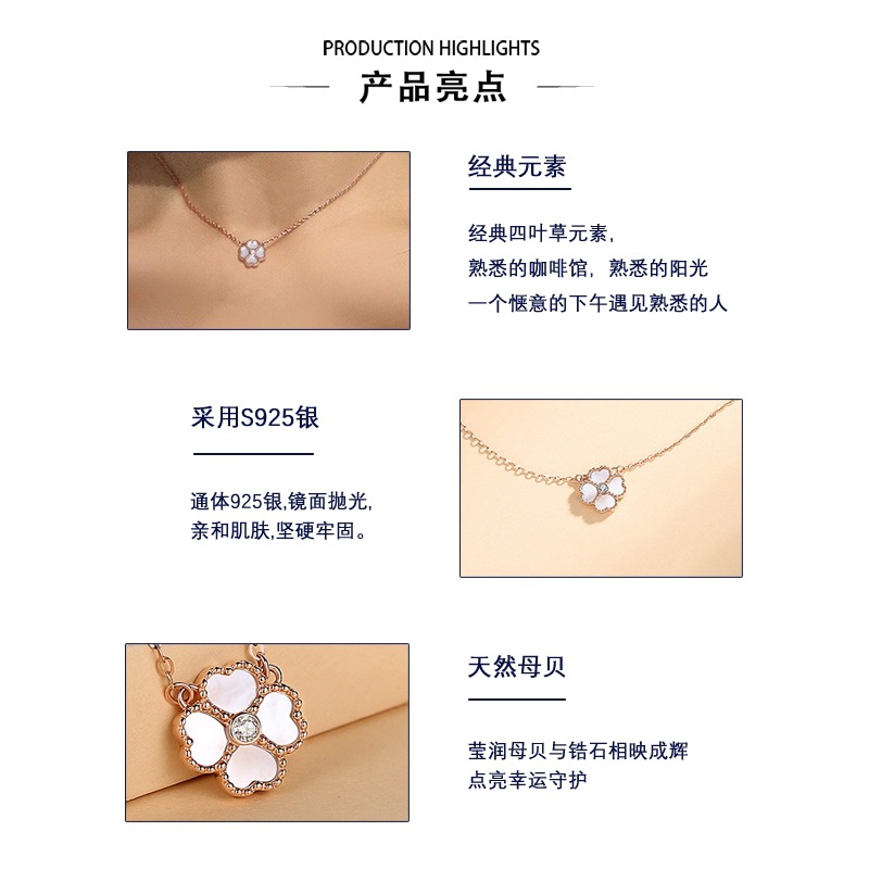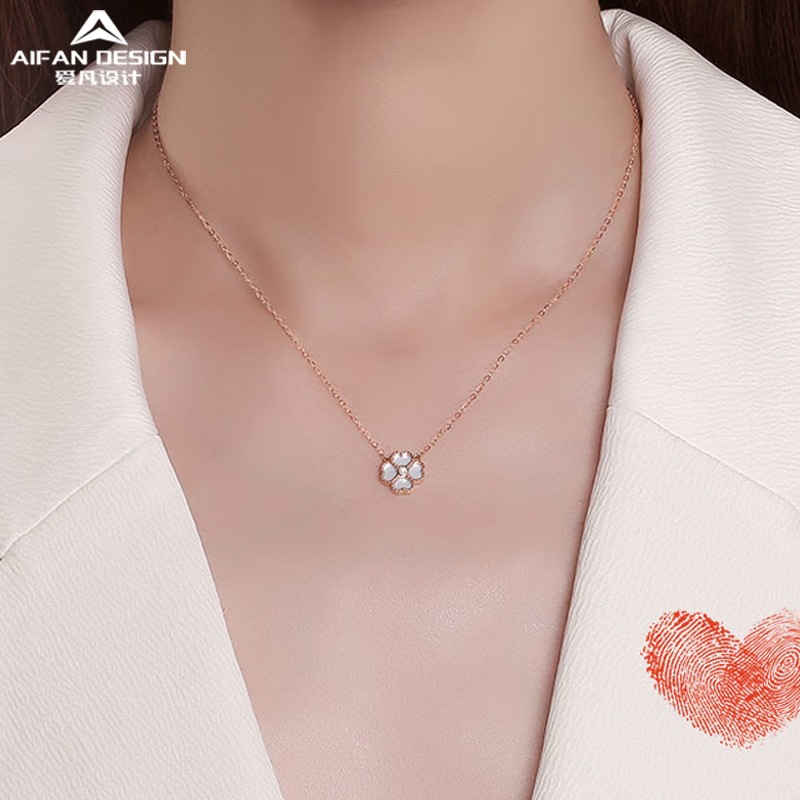 Net Red Burst Four Leaves Grass Necklace Woman Fashion Ins Wind White Fritillary Pendant 100 lap s925 pure silver jewellery-Taobao