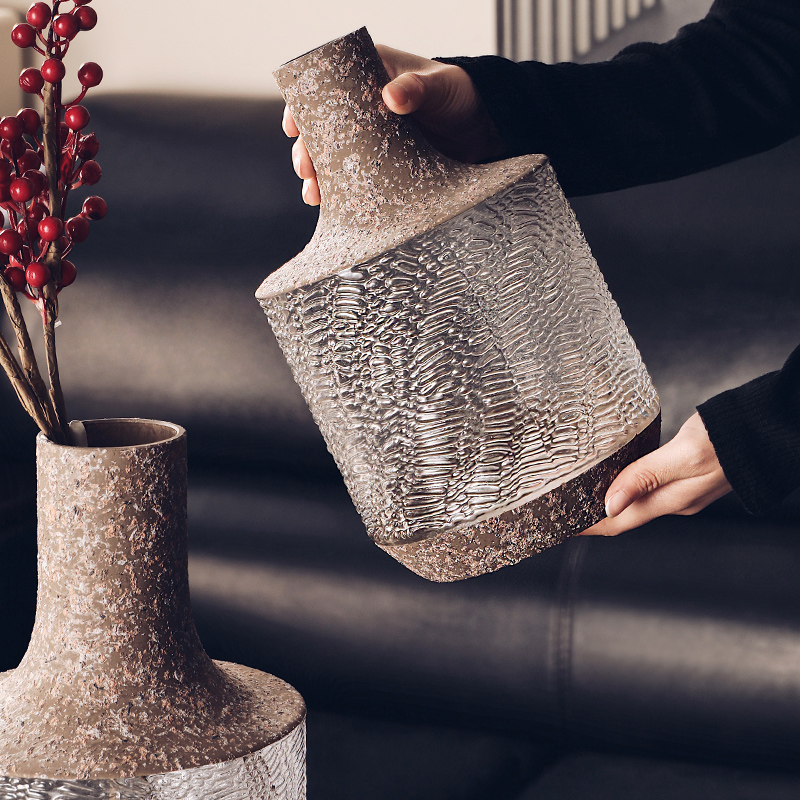 New Chinese Vase Glass Flowers Flower Flower Flower Arrangement Retro Ins Wind Advanced Art Sensation Table Folk Juku 947g-Taobao
