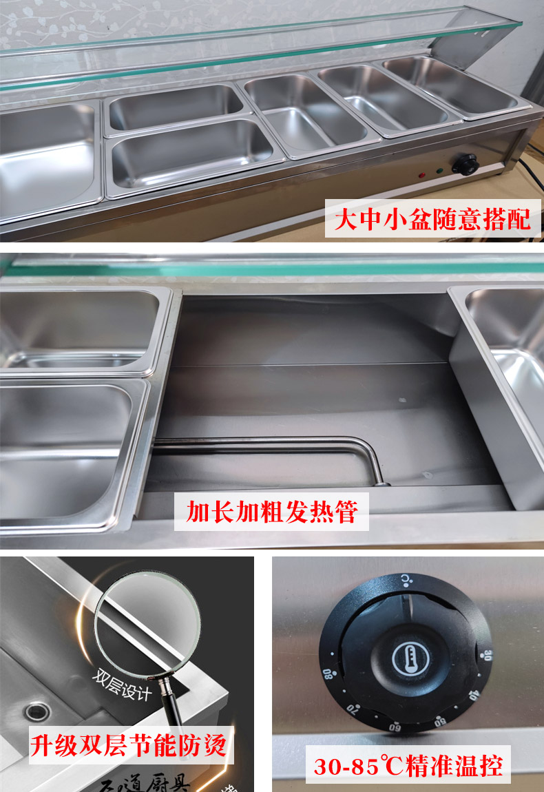 Fast Food Insulation Taiwanese Business With Heated Desktop Buffet Hot Vegetable Insulated Soup Pool Cafeteria for Vegetable Selling Terrace Glass Hood
