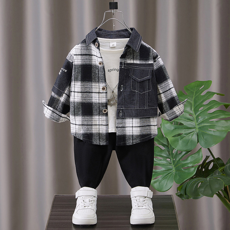 Boys' shirts 2022 new autumn children's spring and autumn long-sleeved fried street jacket boys casual plaid shirt jacket